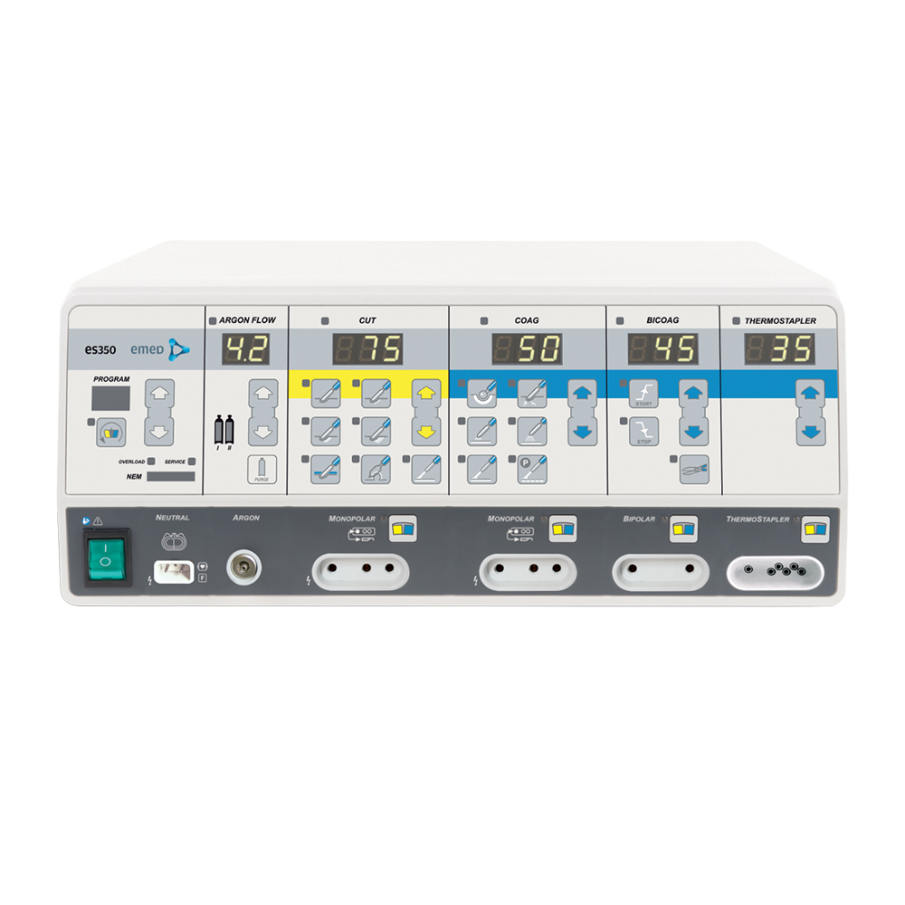 Nuestro electrobisturí Emed, modelo ES 350 AT de Alta complejidad está diseñada bajo los más altas estándares de calidad y seguridad, permitiendo trabajar en todas las áreas clínicas y quirúrgicas de un Hospital o Clínica.